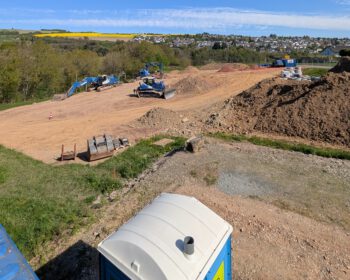 In der ersten Woche nach dem Spatenstich begann die Firma Schnorpfeil mit den Erdarbeiten auf dem Baustellengelände. Parallel wurde mit den Kanalarbeiten begonnen.